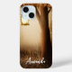 A phone case with a whimsical enchanting illustration in rich brown and yellow colours. A magical mystical forest with a large tree holding an old fashioned lantern. Fairy lights dancing all around. An enchanting wonderful design.