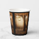 Paper cups with a whimsical enchanting illustration in rich brown and yellow colours. A magical mystical forest with a large tree holding an old fashioned lantern. Fairy lights dancing all around. An enchanting wonderful design.