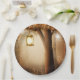 Paper plates with a whimsical enchanting illustration in rich brown and yellow colours. A magical mystical forest with a large tree holding an old fashioned lantern. Fairy lights dancing all around. An enchanting wonderful design.