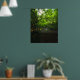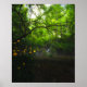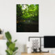 Magical forest with yellow flowers and waterfall poster