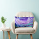 Colourful throw pillow features a beautiful fantasy scene of abstract frozen waves and cliffs of ice in a watercolor style composition