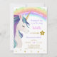 Magical glitter colourful unicorn rainbow birthday party invitation.