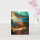 This card has a starry space back ground with a witch driving the car with her cats and says Hope you're on board for a magical Halloween. Inside is blank.