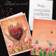 In a season when you need it most, it is the hands of your community that hold you up. This heartfelt thank you card features a beautiful, hand-painted illustration of two hands gently cradling a glowing red heart, surrounded by a vibrant garden of tulips.