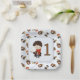 Celebrate a magical first milestone with these enchanting Harry Potter paper plates. The centre of the plate features an adorable, large illustration of a chibi-style Harry Potter holding his loyal owl, Hedwig, standing proudly next to a large number '1' to mark the special occasion. The design is framed by a whimsical border with a repeating pattern of Harry, Hermione, and Ron soaring on their broomsticks. These sturdy paper plates are perfect for serving birthday cake and party snacks, adding a wonderfully themed centerpiece to your little wizard's first birthday party tableware.