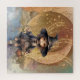 The large, luminous moon looms overhead, a celestial guardian overseeing the mystic proceedings. Its golden rays mingle with ethereal light blues, casting an entrancing glow that bathes the scene in an otherworldly radiance. This beguiling fusion of neutral golds and gentle blues evokes a sense of awe and wonder, enveloping the viewer in a cocoon of magical allure.