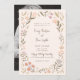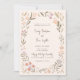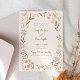 Whimsical wedding invitation card featuring hand drawn illustration of flowers in pastel colours.