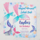 Celebrate your daughter's special day with this enchanting Magical Mermaid birthday invitation! Featuring charming watercolor mermaid tails in pink, teal, and purple, this design is perfect for a magical under-the-sea party theme. The elegant design is beautifully complemented by seashells, starfish, and gold glitter accents. Personalise this invitation with your party details to create an unforgettable mermaid celebration for your little one. Make a splash with this unique invitation!