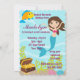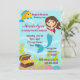 This pool party birthday party invitation features a beautiful mermaid and a treasure chest on the bottom of the sea and customisable text fields for your party information.