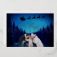 Bring sparkle and wonder to your holiday greetings with this luxury silver foil Christmas card. The front design features dazzling real silver foil stars and lettering, shining beautifully against a deep blue starry night sky. A silhouette-style photo cutout allows you to insert your own family picture, making it look as though you’re standing beneath Santa’s sleigh as it soars over a snowy forest backdrop, a truly magical holiday scene!