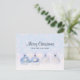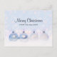 Holiday postcard with a magical Christmas design. Christmas tree decorations sitting together on some white snow. The background has a white bokeh (blurred lights) pattern with falling snowflakes. Perfectly captures the wonder and magic of Christmas.