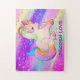 This fun puzzle features a cute baby Unicorn against a colourful background of purples, pinks, and sparkly silver stars. "Unicorn Love" quote can be changed and personalised with your name if you wish. Makes a great gift! Design©Rosalind Moore, Cherry Lane Designs.