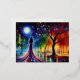 Magical night sky with glowing orbs lanterns art foil holiday postcard