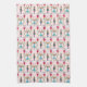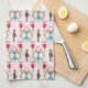 Cute and fun Christmas kitchen towel featuring hand drawn illustration of cat, dog, and mouse as nutcracker ballet characters. The background is pink.
