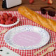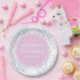 At the centre of each plate is a large pale pink circle, perfect for personalising with the name, age, and birthday date — adding a sweet, customised touch to your magical mermaid or ocean-themed celebration. 🎀✨