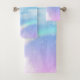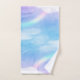 Towel set with a soft and lovely background image. Pastel blues and pink clouds with a magical rainbow.