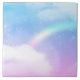Ceramic tile with a soft and lovely background image. Pastel blues and pink clouds with a magical rainbow.