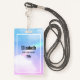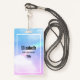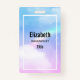 Personalised name badge with a soft and lovely background image. Pastel blues and pink clouds with a magical rainbow.