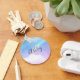 A key chain with a soft and lovely background image. Pastel blues and pink clouds with a magical rainbow.