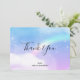 Thank you card with a soft and lovely background image. Pastel blues and pinks clouds and a magical rainbow.