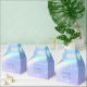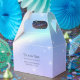 A tiny favour box with a soft and lovely background image. Pastel blues and pink clouds with a magical rainbow.