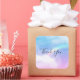 Thank you stickers with a soft and lovely background image. Pastel blues and pink clouds with a magical rainbow.