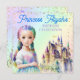 A fairytale invitation fit for a princess! A beautiful Princess with pastel braids and a rainbow castle.