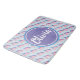 Bath mat design features an original marker illustration of a pretty pink unicorn, with blue and purple accents. Just personalise with your information.