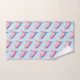 Bath towel set features an original marker illustration of a pink and blue unicorn.