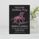 This magical design is sure to please your girl who loves unicorns for her birthday party. This girls birthday invitation design features a pretty pink unicorn with stardust sprinkles with text in pink and white.