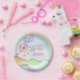The Magical Rainbow Unicorn Birthday Paper Plates are perfect for adding a magical touch to any girl’s birthday party. Featuring a pastel rainbow design with an adorable unicorn surrounded by a balloon bouquet and sparkling accents, these plates bring a cute and girly vibe to the celebration. Ideal for a 1st birthday or any kids' birthday party, they combine practicality with enchanting charm.