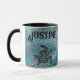On this dreamy mug are paint strokes shades of blue with shimmery and glittery overlays creating whimsical magical modern art along with a black tribal swirl sea turtle with gold glittery drops for added whimzy. Can be personalised