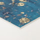 On this dreamy blue yoga mat are paint strokes shades of blue with shimmery and glittery overlays creating whimsical magical modern art along with a black tribal swirl sea turtle with gold glittery drops on the top and bottom for added whimzy.