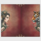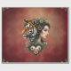 Magical steampunk floral world: An artistic, magical portrait design that combines natural motifs with mechanical elements. The motif features a woman's profile and a tiger's profile to symbolise strength and focus. Beneath the two figures is a heart-shaped frame decorated with flowers and greenery and subtle clockwork details.