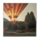 Magical Sunrise Hot Air Balloon View With Red Car Ceramic Tile