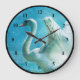A charming, magical and absolutely wonderful image of a white swan. Flapping and fluttering its wings and enjoying a light summer rain shower. The background and overall tone is a beautiful turquoise blue. Rejuvenating and refreshing. The image has an enchanting fantasy quality to it.
