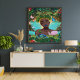 Such a beautiful graphic design with bold colours. This graphic design is an amazing piece of artwork perfect for any product or space. It depicts a teenage girl as an African American black fairy, with beautiful colourful wings, amidst a field of leaves, butterflies and fireflies. The bold and bright colours of the graphic design bring it to life, while the cottagecore and graphic design elements make it look great on any product. A definite must-have for any art enthusiast, this graphic design is sure to brighten up any space or product.