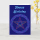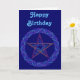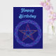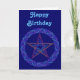Colorful Pentagram Art Birthday Greeting Card. Background color can be customized. Can be personalized with your name, initials or unique message. Two entwined pentagrams in reds and blues surrounded by a celtic knot circle in blues and purples done in my dots and dashes style. The Pentacle has been used since ancient times. Pythagoras may have become acquainted with the Pentagram during his sojourns in Egypt and Babylon and the Pythagoreans used it as a sign of recognition. It was also embraced by ancient Celts, Israelites, Christians and magicians. Today it is widely associated with Wiccans, neo-Pagans and New Age Earth and Spirit based religions.