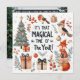 An adorable Christmas-themed design featuring cute woodland animals—foxes and festive birds—dressed in cosy winter scarves and surrounded by holiday presents. The soft colour palette of red, white, and grey, paired with decorated Christmas trees, stars, and delicate floral elements, brings a Scandinavian-inspired charm. The "It's that Magical time of the year" message completes this heartwarming, whimsical holiday scene, perfect for cards and seasonal decor.