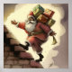 A festive scene is depicted in this image, showcasing a jolly Santa Claus with a plethora of presents. The Santa Claus figure is prominently featured in the centre, dressed in his traditional red and white suit with a fluffy hat. He is laden with gifts, exuding holiday cheer as he spreads joy. The overall composition evokes a warm and cosy holiday atmosphere, perfect for spreading Christmas spirit
