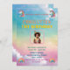 This is a pastel-coloured unicorn-themed birthday invitation for a child's first birthday. It features a whimsical background with soft rainbow hues, unicorn illustrations, and a centred photo of the birthday child. The text includes event details such as the date, time, location, and RSVP information. Perfect for a magical and fun celebration. Customise for a personal touch!