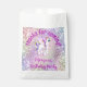 Magical unicorn birthday party favours favour bag for treats for a girl unicorn birthday party in pink and purple glitter rainbow party theme.