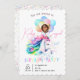This customizable magical unicorn birthday invitation features a whimsical watercolor unicorn with a rainbow pastel mane, adorned by a bunch of soft-colored birthday balloons and surrounded by vibrant confetti borders of stars and dots. The invitation showcases elegant scalloped edges, playful pastel-colored lettering for "BIRTHDAY PARTY," and personalized text areas for the child’s name, photo, event details, and RSVP. Designed for birthdays and magical celebrations, this high-quality unicorn party invite sets the tone for an enchanting and unforgettable event with dreamy colors and creative details, making it the ultimate choice for kids’ parties, unicorn lovers, and themed celebrations.