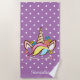 Magical Unicorn Colourful Girl Name Floral Purple Beach Towel