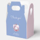 This simple blue and pink magical birthday party favour box features a watercolour illustration of a floral unicorn surrounded by hearts and gold butterflies. Customise it with your little girl's details, and use the editing tool to adjust the font size, placement, and colour to suit your needs.