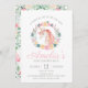 This cute unicorn birthday invitation features a pink, yellow and green Floral wreath framed by modern typography. On the reverse there is a Beautiful Floral border to match the wreath surrounding the unicorn.