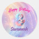 Celebrate your child's 8th birthday with these magical unicorn stickers! Featuring a whimsical pastel design, these stickers are perfect for party favours, decorations, or adding a touch of sparkle to any gift. Each sticker showcases a cute unicorn nestled within a vibrant rainbow swirl, creating a dreamy and enchanting atmosphere. Her name is personalised to make this birthday truly special, and the number 8 highlights the milestone occasion. These high-quality stickers are sure to be a hit at any 8th birthday party!