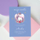 This simple blue and pink magical birthday party invitation features a watercolour illustration of a floral unicorn surrounded by hearts and gold butterflies, accompanied by the phrase "Magic Awaits" in elegant script typography. Customise it with your little girl's details, and use the editing tool to adjust the font size, placement, and colour to suit your needs.