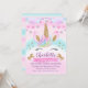 Blue pink unicorn birthday invitation with a little bling. This design features a unicorn face, rainbow, hearts and some faux gold foil unicorns. A sweet choice for any little girl who loves unicorns.