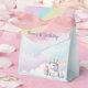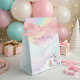 Send your guests home with joy using these magical unicorn rainbow birthday favour boxes. Decorated in pastel pink, purple, and yellow with a whimsical unicorn design, these boxes are perfect for filling with candy, toys, or small gifts. A sweet and practical detail to complete your unicorn birthday celebration.